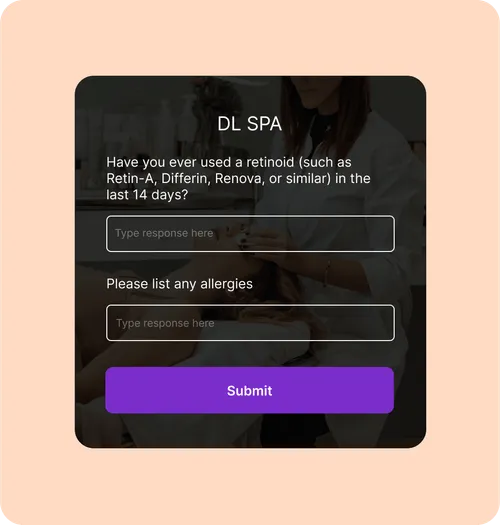 GlossGenius allows you to build unlimited forms and waivers that you can customize by service. Insert forms directly into the client booking process. Everything is in one place - no redirects!