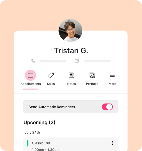 A CRM for the beauty and wellness industry, like GlossGenius, is a system designed to store all your client information and track all your appointments. CRM software that is tailored to meet the unique needs of salons, spas, and other self-care businesses has unique features like appointment reminder texts, integrated intake forms and waivers, and more.