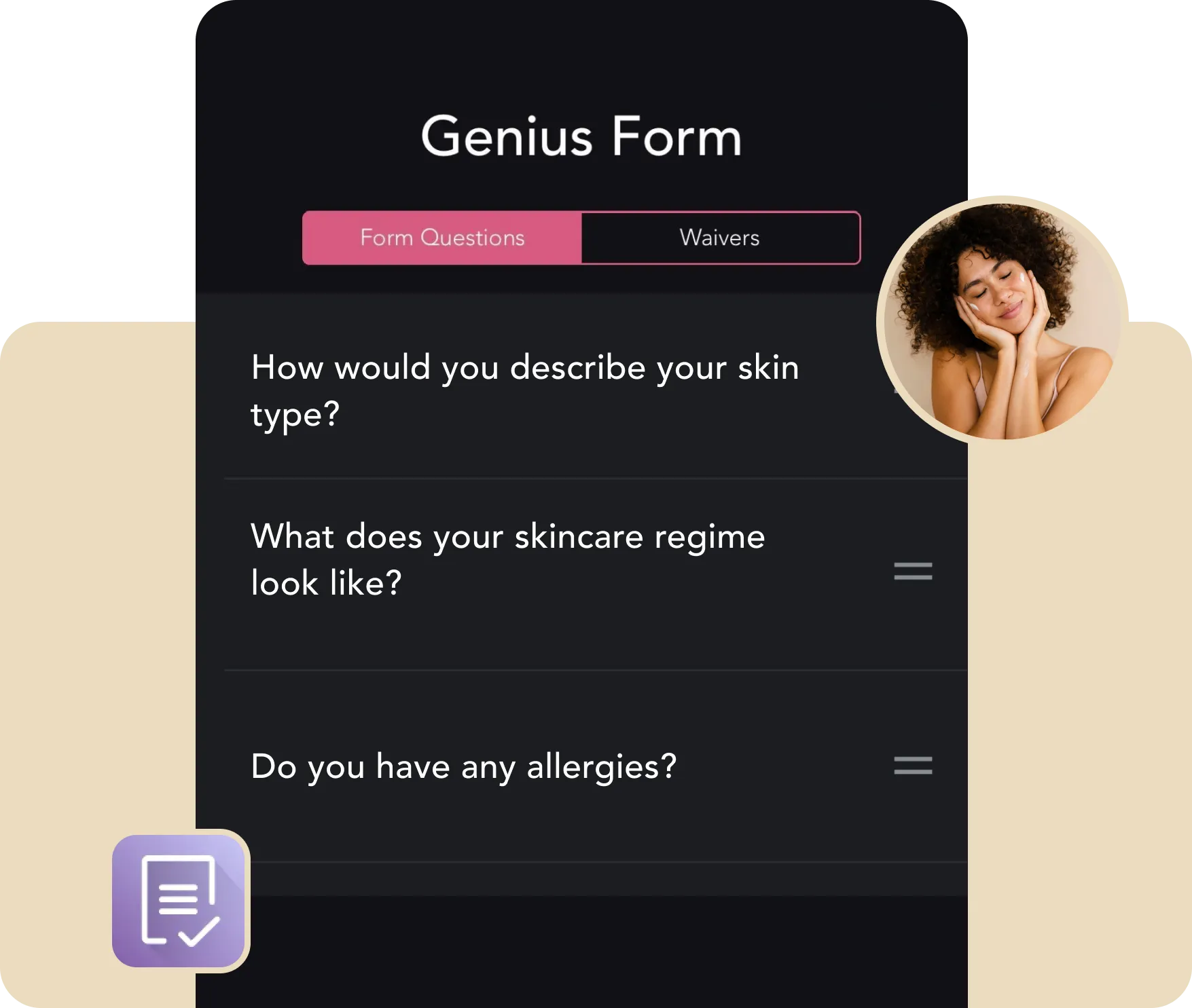 With Genius Forms, you can create multiple forms from one template. Although you will see all questions listed on the Genius Forms screen, your clients will only receive questions related to the service(s) they booked.