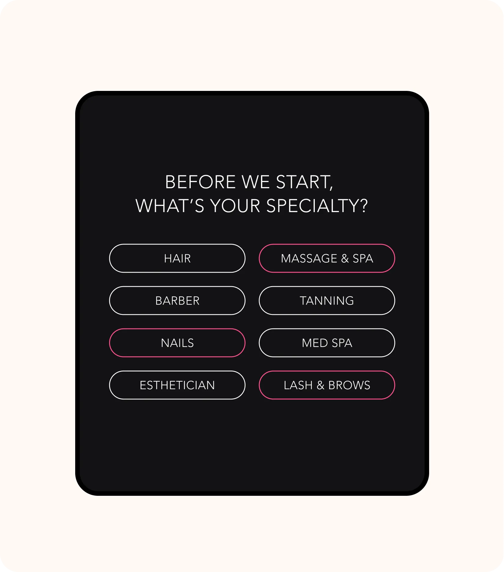 Not sure what to cover? Genius Form will automatically suggest questions based on your speciality, whether you have one or many.