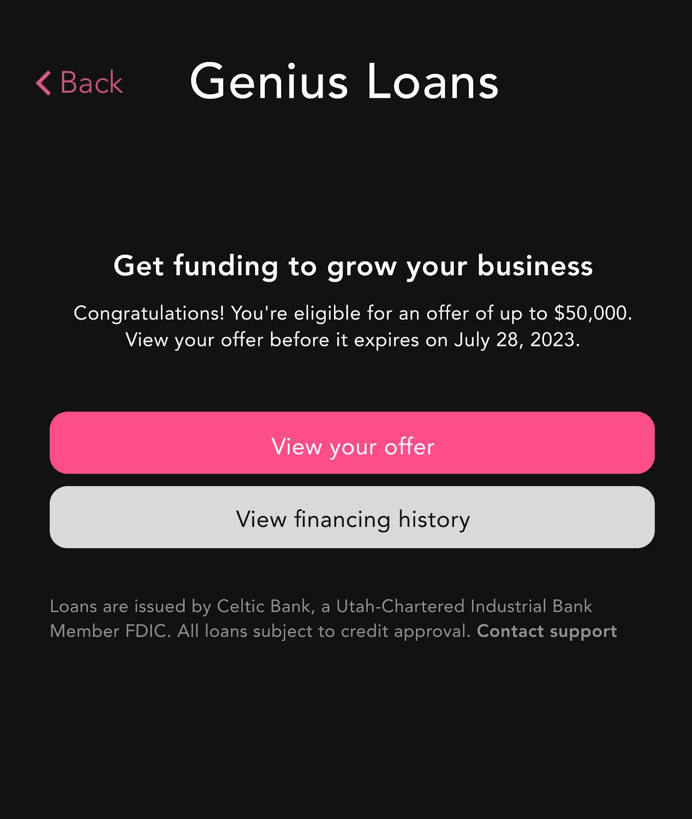 Stripe Capital offers financing types that include loans and merchant cash advances. All financing applications are subject to review prior to approval. In the US, Stripe Capital loans are issued by Celtic Bank and YouLend provides Stripe Capital merchant cash advances.