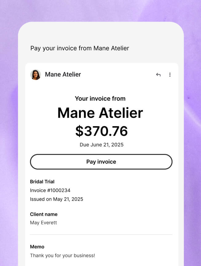 - Flexible payments for clients: Invoices make it easy to collect payments for services, products, memberships, deposits, and more when you don't have a client's card on file.