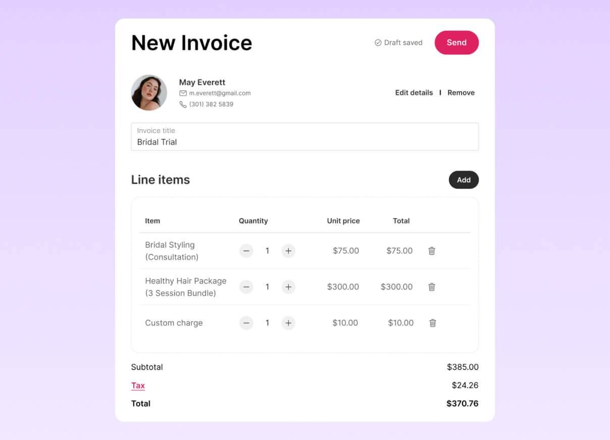 - Looks professional: Sending an official invoice feels more polished than texting payment requests or using Venmo. It reinforces trust, giving your salon or spa a more legitimate feel.