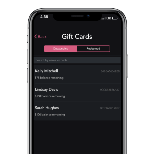 To track your gift card purchases, head to the GlossGenius App> More > Gift Cards.
