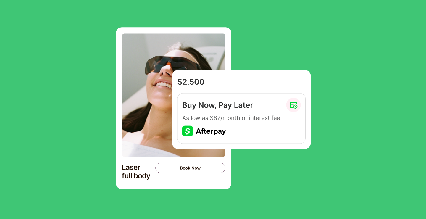 - Offer incentives. To make Afterpay even more attractive, Yolanda sometimes adds a bonus — like free Botox units with a larger package or discounts on laser services when paid with Afterpay. These small extras have been the key to selling higher-value services and building client loyalty.